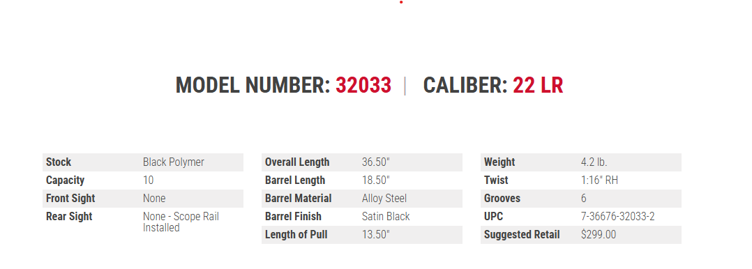 - Satin Black finish with durable synthetic stock