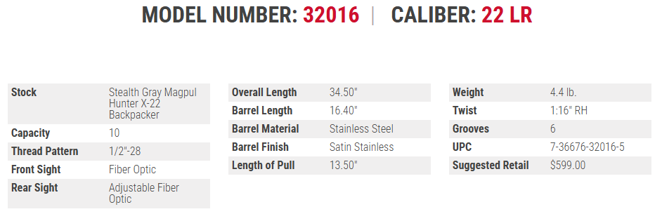 10/22 TD 22LR SS/SYN 16" TB 32016 | THREADED BBL